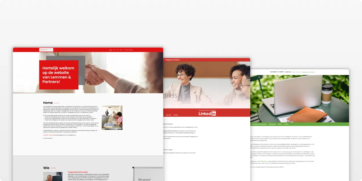 Wij gingen direct aan de slag met deze uitdagende opdracht. Na een grondige analyse ontdekten we dat de websites van lemmen-en-partners.nl, lemmenlearning.nl en germaine-en-partners.nl waren gebouwd met verouderde PHP-code, wat de prestaties en beveiliging negatief beïnvloedde. We besloten drie volledig nieuwe websites met gebruik van de laatste versie van WordPress te ontwikkelen. Tegelijkertijd zorgden we voor een naadloze migratie van de hosting en e-mailaccounts, waarbij we alle gegevens veilig overzetten zonder onderbreking. We werkten nauw samen met Piet en Germaine om hun wensen te vertalen naar een modern design en functionaliteit die perfect aansloot bij hun bedrijfsdoelen.